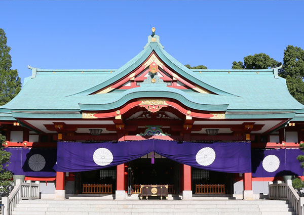 御祭神は、京都を守る比叡山・日吉大社と同じ、山の神様。そのお使いは、狛犬ではなく「神猿(まさる)」と呼ばれ、縁起物のお守りがかわいらしく人気。境内も拝殿も、大江戸を守ってきた神社にふさわしく広々としたもので、比較的大人数の結婚式を挙げたい方におすすめです。