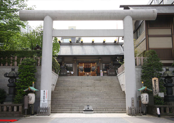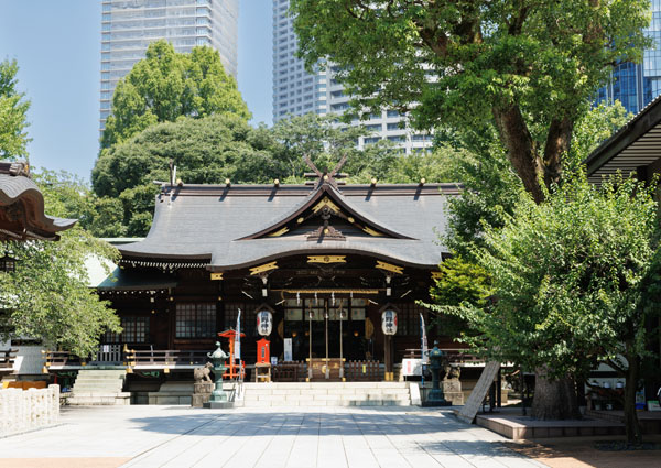 もうひとつ、神楽坂の「赤城神社」は北関東・群馬の赤城山から。女神様であることから、特に女性の幸せを守る神様として江戸市中で大評判となり、花街・神楽坂の賑わいにもつながりました。いまの赤城神社は当時とは違うモダンな御社殿。坂の上の立地、境内に流れる澄んだ空気は同じで、女性に人気という点も変わりません。