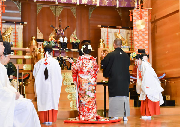 神社の結婚式では、八百万(やおよろず)とも呼ばれる日本の国土や自然を守ってきた神々に、ふたりが新たに家族となることを報告し、末永い幸せを祈ります。結婚式でご縁が結ばれた神社を、家族の人生の節目でまた訪れることができるのも素敵。変わらずそこにある神社は、世代を超えて家族の歴史と思い出をつなぐのにふさわしい場所といえます。
