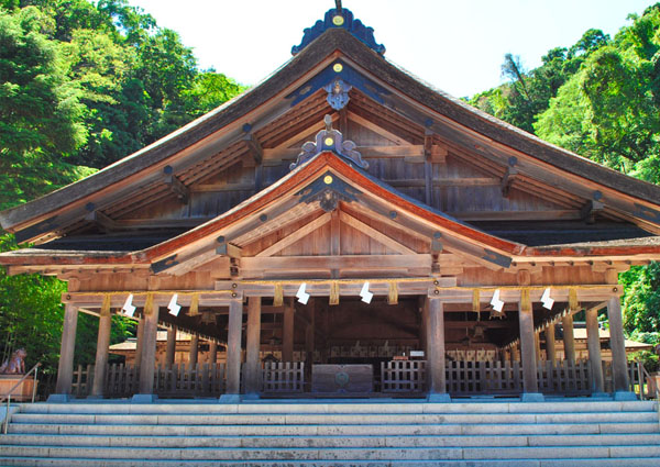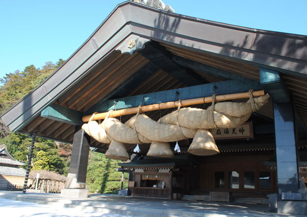 出雲大社は、いうまでもなく日本有数の格式高い神社で、結婚式の舞台としても大変人気があります。こちらで結婚式を挙げるなら、式場は2つ。その一つが「出雲大社神楽殿」です。出雲大社というと、大きな注連縄(しめなわ)のある、まさにこちらをイメージする方が多いのではないでしょうか。