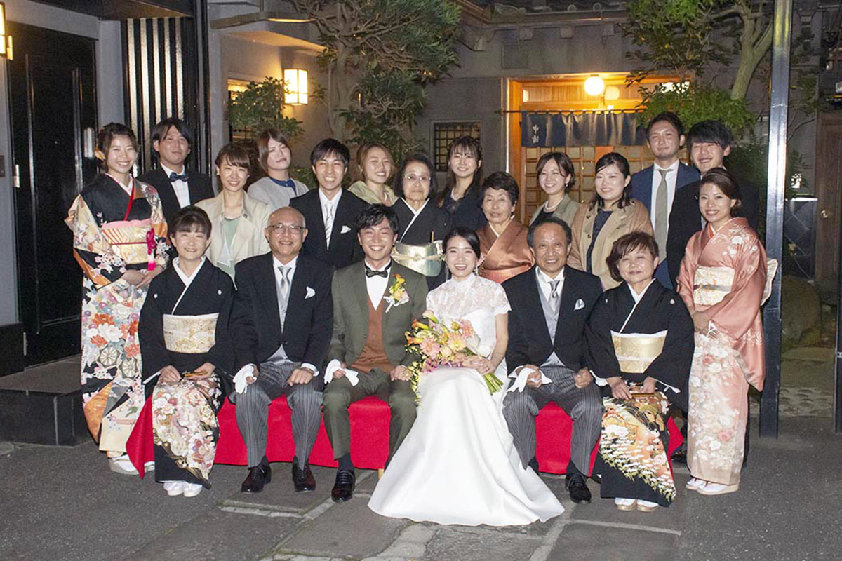 二人の共通の友人と親族のみとのささやかな式でしたので、一人ひとりとコミュニケーションを取り、みんなの笑顔が溢れる空間にしたいと考えていました。プランナーさんからご提案いただいた、両親を呼んでの鏡開きや全員参加でのおみくじ大会(牛嶋神社のおみくじです!)など、みんなで楽しくなれるイベントを取り入れたことで、当日初対面だった両家の緊張もほぐれ、会話も弾みました。ゲスト全員をたくさん登場させたプロフィールムービーも大変盛り上がったようです。徹夜で作成した甲斐がありました(笑)これも、少人数だからこそできた演出だと思います。