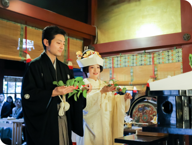 神社での和装神前式と、