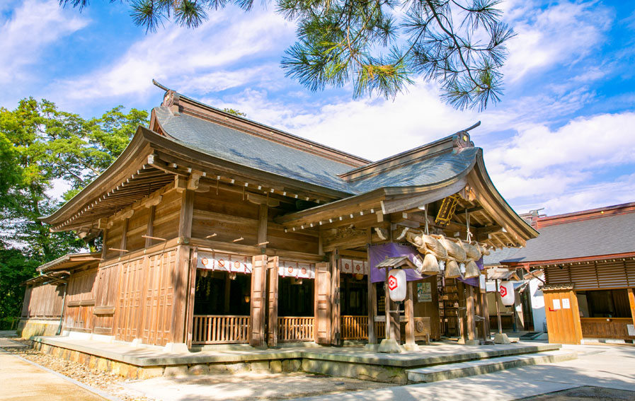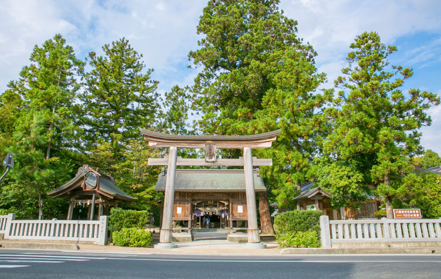 須佐之男命と、『国の乙女の花』と歌われたほどの美しさであったといわれる稲田姫命。このご夫婦が主祭神の八重垣神社。民謡でも歌われたように、古くから「縁結びの神様」として、地元だけでなく全国から参拝客が後をたちません。神話に登場する「鏡の池」で紙に硬貨を浮かべて行う縁占いや、稲田姫命が地に立てた2本のツバキの枝が、成長して一本になったという「連理玉椿」(別名:夫婦ツバキ)など、結婚や縁結びにピッタリないわれが豊富な神社。連理玉椿は、年によってはハート型の二葉が現れることも。女性から『恋と美のパワースポット』として、大変人気のある神社です。